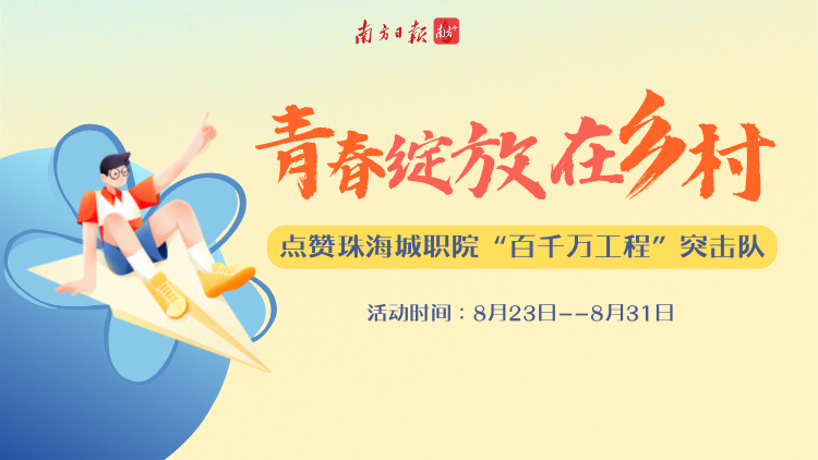 新学期开学前,珠海城职院精选12支队伍宣传展示。点击青春绽放在乡村!点赞珠海城职院“百千万工程”突击队或上方海报进入活动页面,为他们点赞!