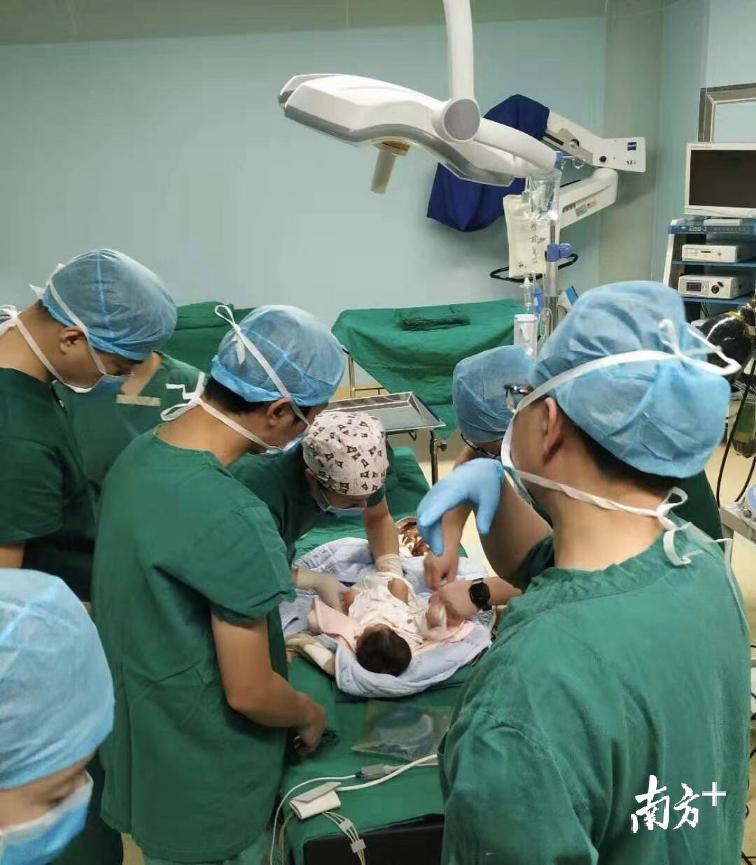 一小时后,手术顺利结束。然而医护人员并没有松懈,小毛像接力棒似的被新生儿科团队接回病房继续看护治疗。