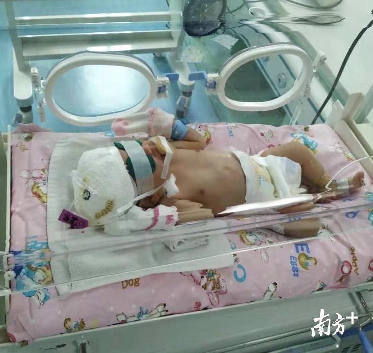 对于刚出生的孩子来说,任何程度的受伤都很可能致命。12月4日,在出生后的第五天,头部仍然肿大的小毛被紧急转至珠海市中西医结合医院。