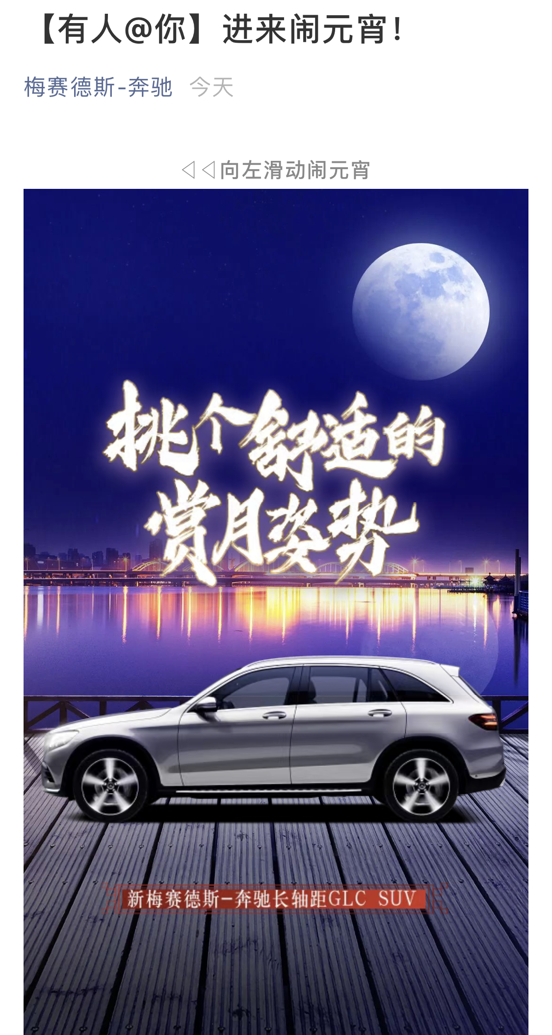 梅赛德斯-奔驰@喜爱奔驰的车友们,一起闹元宵!不同的元宵祝福和场景,和奔驰汽车一起度过。