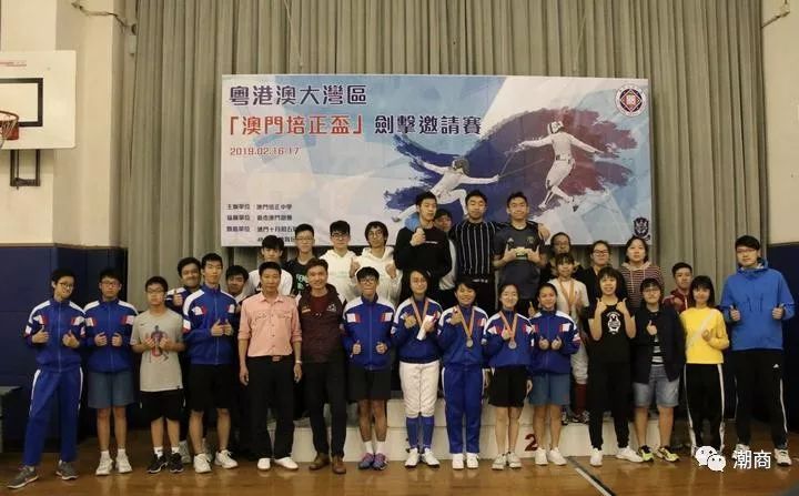 来自国际拉托维亚国家重剑队领队、澳门培正中学击剑队主教练龙杰、中美邮报副社长魏炯才为运动员取得佳绩颁奖并合影留念