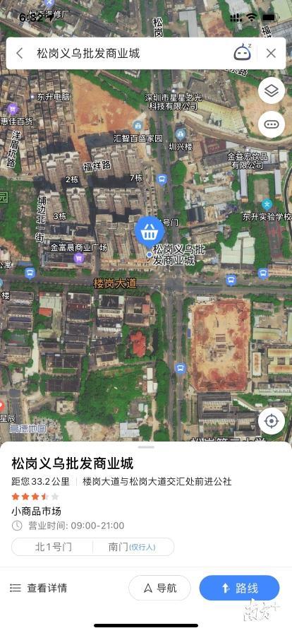 笔者通过地图软件搜索发现,事发点位于宝安区松岗街道的松岗大道与楼岗大道交叉口。