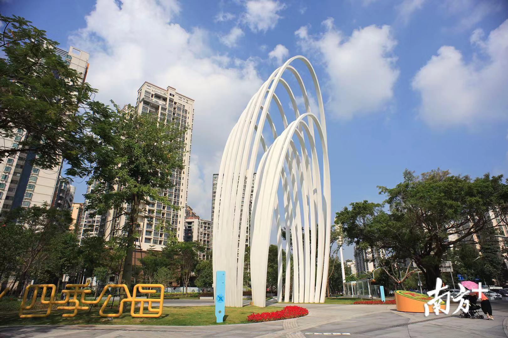 出门见公园,随处闻花香。2019年10月,宝安中心区四季公园项目获得了A&D2019建+设大奖,成为宝安打造“公园之区”的一个缩影。宝安区政府高度重视公园之区的建设,凭借着辖区优越的自然资源优势,在城区的快速发展中,把公园建设作为民生工程重点投入。目前,全区已建成公园180个,构建了居民出门500米有社区公园,2000米有市政公园,5000米有森林郊野公园的三级公园覆盖网络体系。