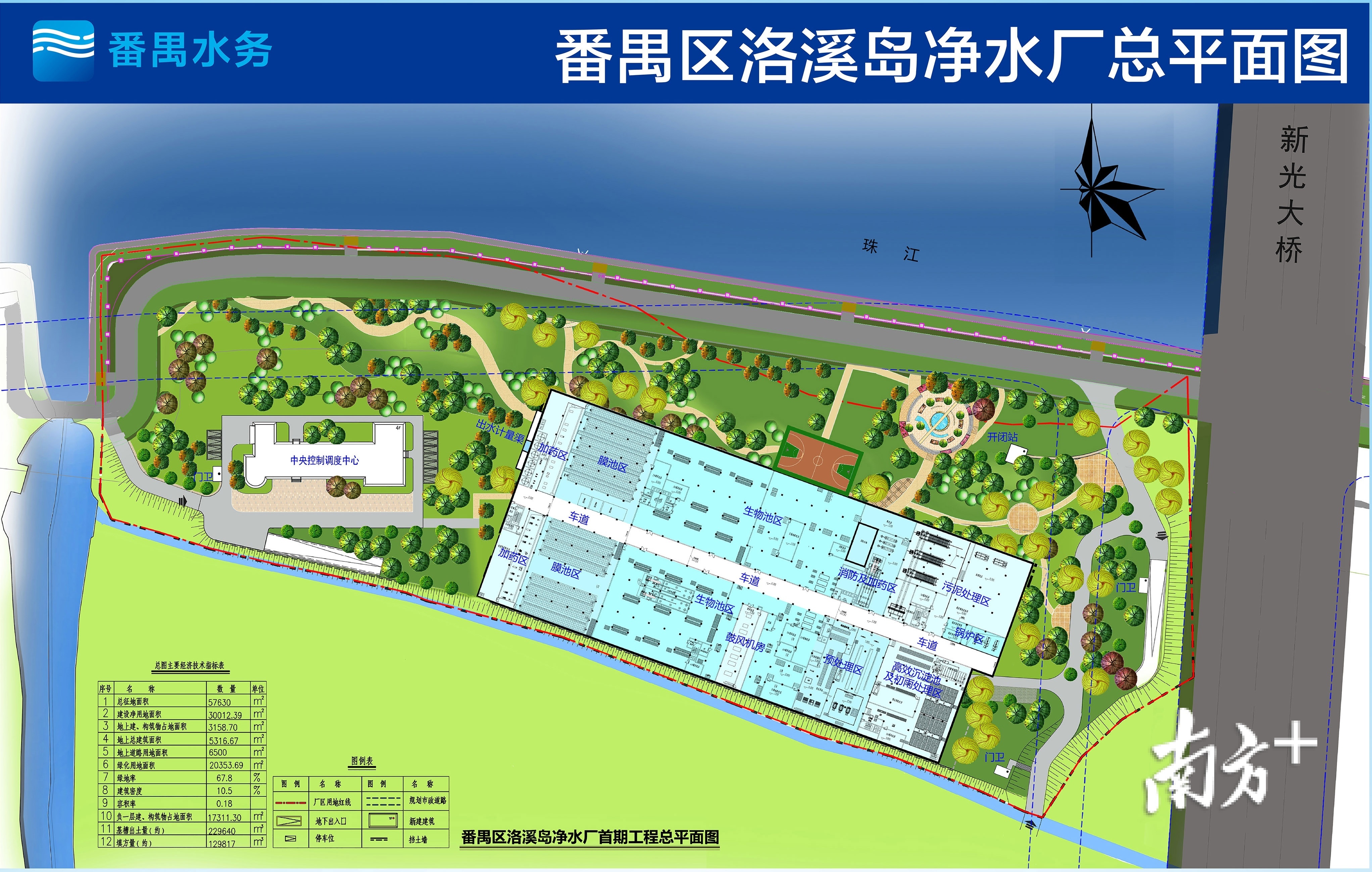 作为番禺首座地埋式净水厂,该厂从建设初始就面临工期短、任务重、施工难度大、客观制约因素多等诸多困难。由于规划厂址对面为广州主城区,紧邻珠江后航道、新光大桥等,位置观感较强,景观要求较高,如果选择建设地面污水处理厂,会影响洛溪岛整体城市形象。而全地埋式是地下建水厂、地上为景观公园的新型污水处理厂建设方式,具有占地空间小、噪音污染少、安全性高、环境美观、无须考虑绿化及隔离带等优势,很好地解决了污水处理厂的“邻避效应”难题。该项目地面作为绿地休闲公园,采用公园式的外观环境设计,功能分区明确生产区与公园休闲区。