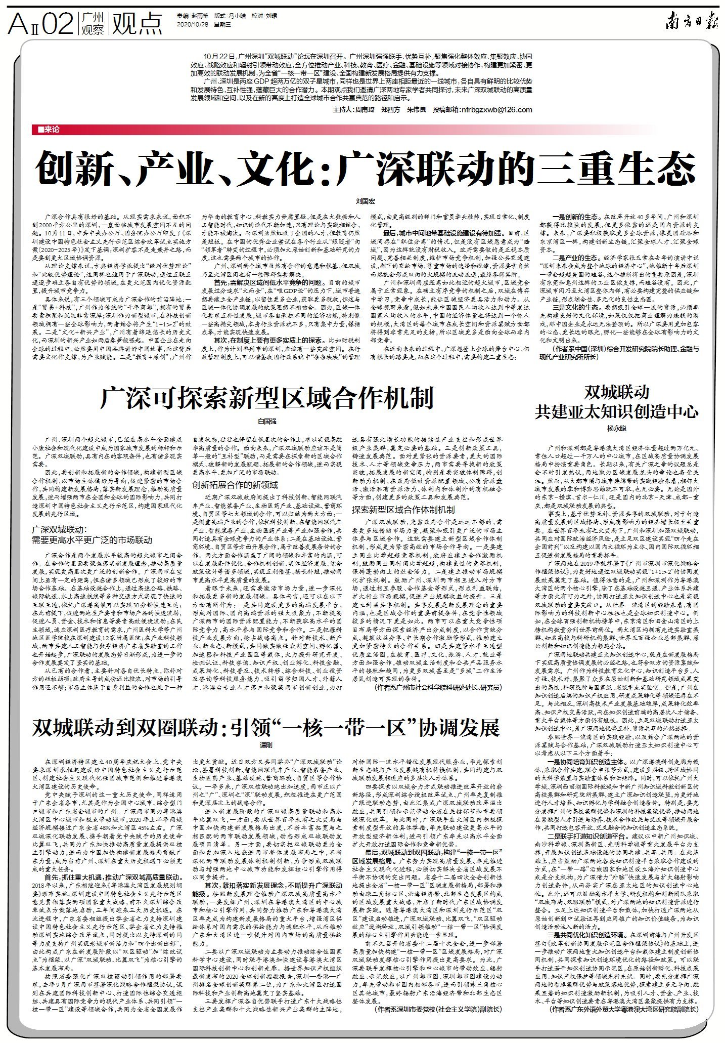 广州、深圳是两座GDP超两万亿的双子星城市,同样也是世界上两座相距最近的一线城市,各自具有鲜明的比较优势和发展特色,互补性强,蕴藏巨大的合作潜力。本期观点我们邀请广深两地专家学者共同探讨,未来广深双城联动的高质量发展领域和空间,以及在新的高度上打造全球城市合作共赢典范的路径和启示。