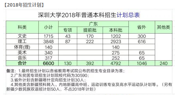 广东省内录取批次分为提前本科批和本科批次,面向省内招生计划不分区域。该校新增了6个招生专业:数字媒体艺术、休闲体育、社会学、西班牙语、德语、口腔医学。深圳大学招生办负责人介绍,实行平行志愿的省份的普通文理类考生,在深大投档比例范围内,对于出档到深大的考生,如服从所有专业调剂且体检合格,符合有关录取规定的,深大承诺录取。