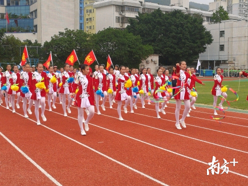 开幕式活动现场,随着国旗队、会旗队、彩旗队依次亮相的是来自盐田区18所中小学的运动员方阵。各校代表队成员以饱满精神状态,喊着响亮口号,迈着铿锵步伐,整齐步入会场接受检阅。