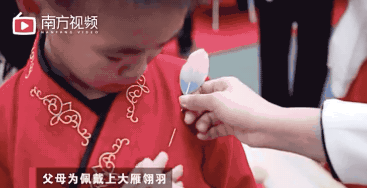 福田区莲花小学的开学典礼古色古香,学生们着传统服装,经“成长门”,集体作揖向老师行“谢师礼”。