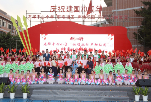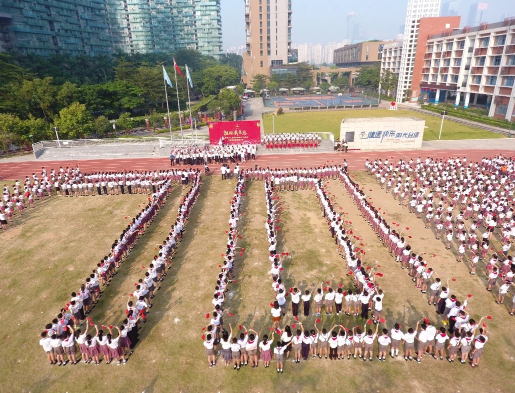 在新中国成立70周年之际,深圳校园举办各式各样、丰富多彩的爱国主义教育以及庆祝活动:与国旗合影,共唱国歌;同社区携手,与香港姊妹学校齐聚一堂;巨幅国旗、手绘山河、青春快闪……深圳学子们用自己独特的方式深情表白、向新中国成立70周年献礼。