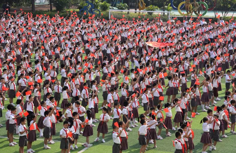 9月29日上午,深圳中学携6所“共同体校”以及具有爱国、爱港优良传统的友谊学校——香港福建中学,共计1万3千多名师生共同举行以“同饮一江水,同唱一首歌”为主题的升旗仪式。
