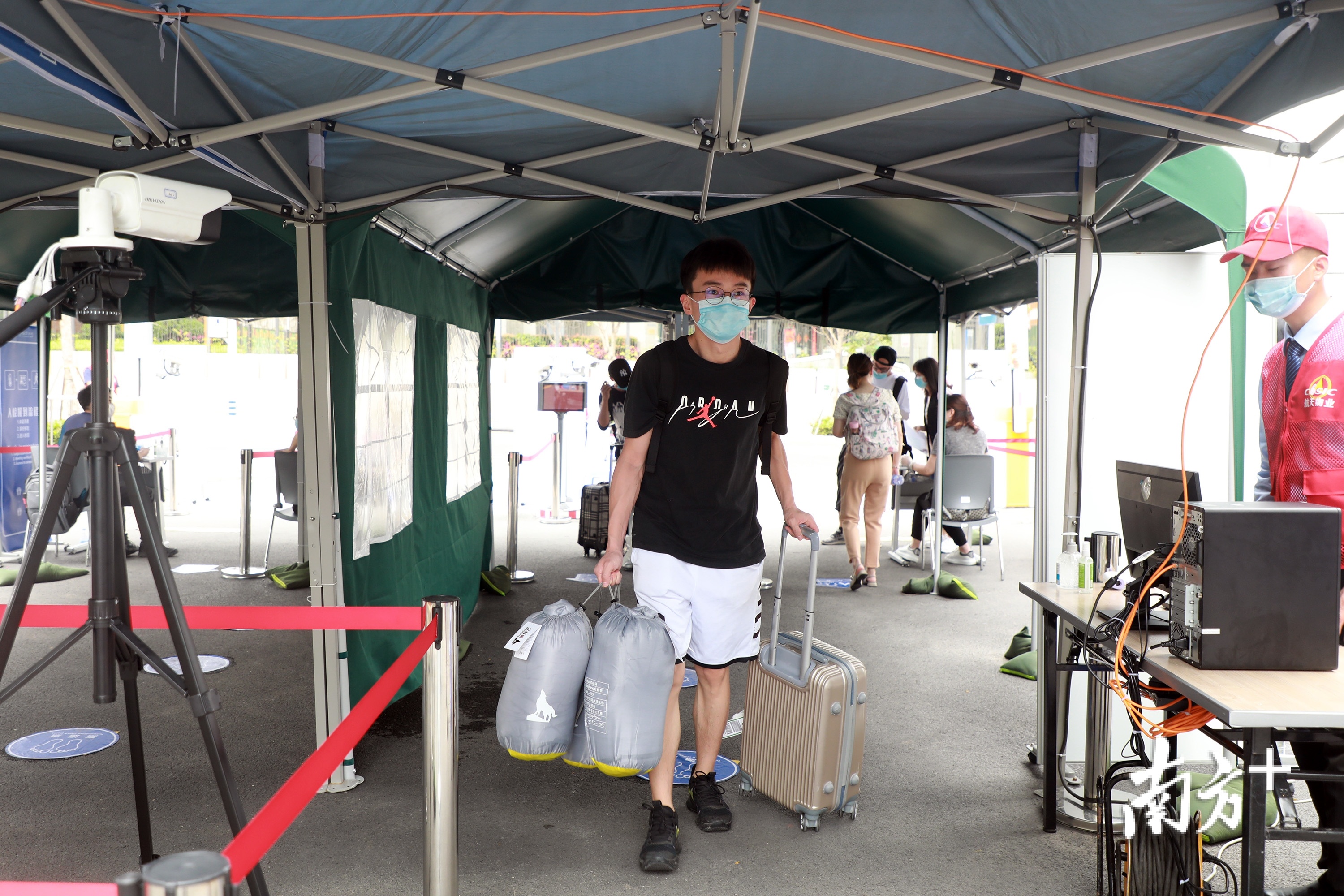 5月11日,在哈尔滨工业大学(深圳)校门口,拖着行李箱的大学生们陆续抵达报到。