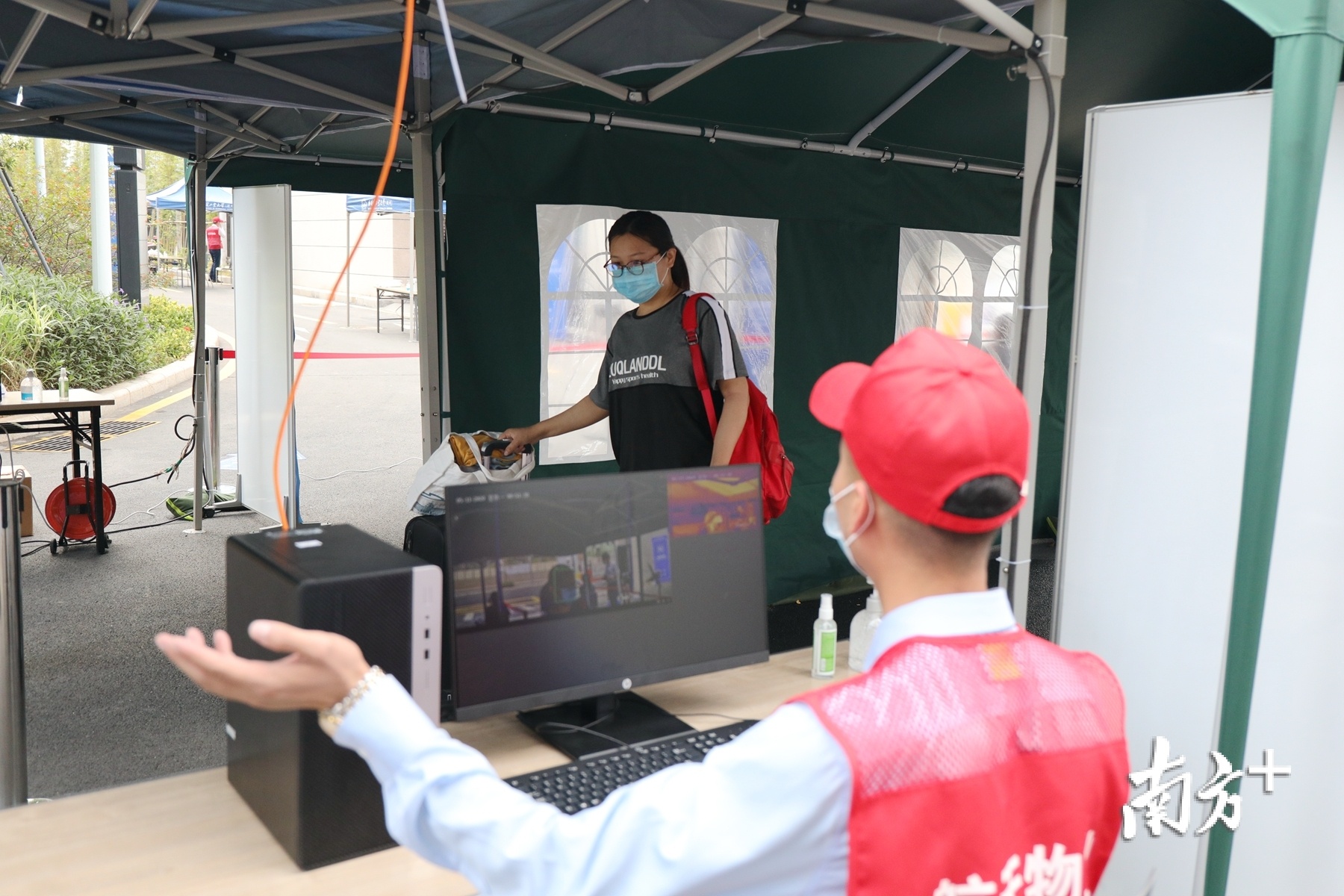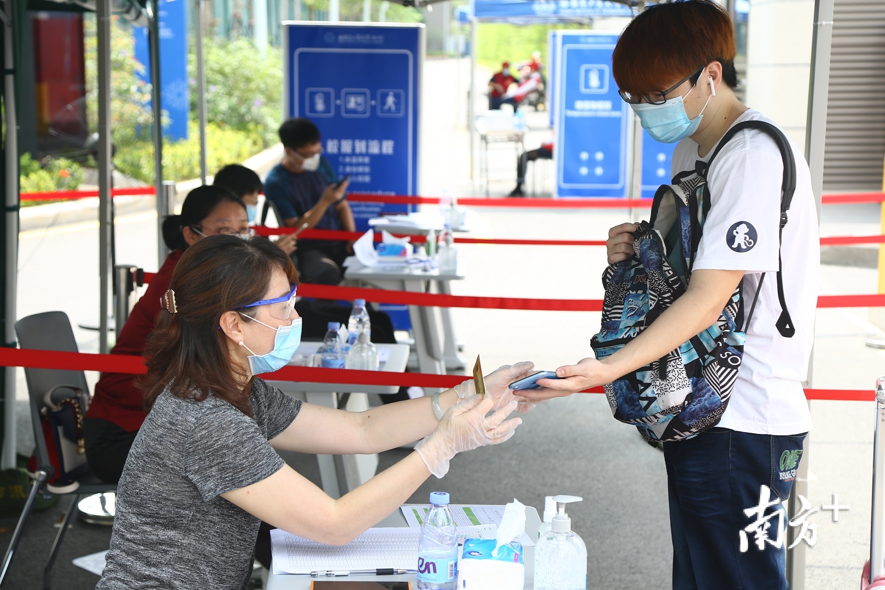 行李与手部消毒、身份核验登记、体温筛查……
