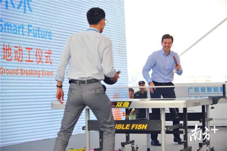 今天(28日)上午,佛山顺德北滘,在美的库卡智能制造产业基地启动仪式上,德国著名乒乓球运动员蒂姆·波尔作为库卡集团代言人出席,成为现场亮点。