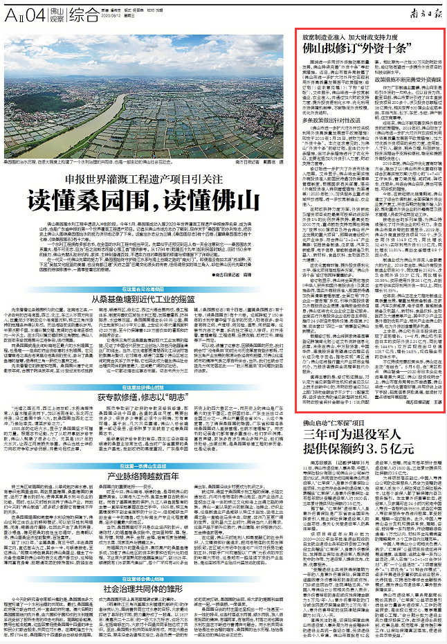 今年,在新冠肺炎疫情期间,佛山建立了综合协调机制,全面保障外资企业复产复工,并在后期防控境外输入阶段,帮助重点外资企业的外籍高层及技术管理人员做好返岗签证工作。