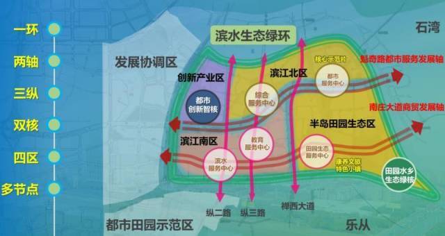 根据规划,凤翔湾将构建“一环两轴三纵、双核四区、多节点”的空间格局。与绿岛湖相似,凤翔湾突出自然禀赋特色,背靠东平河、吉利涌的滨水生态绿环,依托魁奇路都市服务发展轴、南庄大道商贸发展轴,构建禅西大道、纵三路、纵二路的交通格局,组成都市创新智核、田园水乡生态绿核。