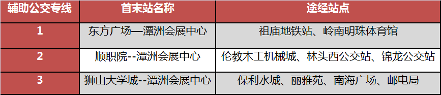 将增设禅城东方广场、顺德顺职院、南海狮山大学城至潭洲国际会展中心共3条辅助公交线路。