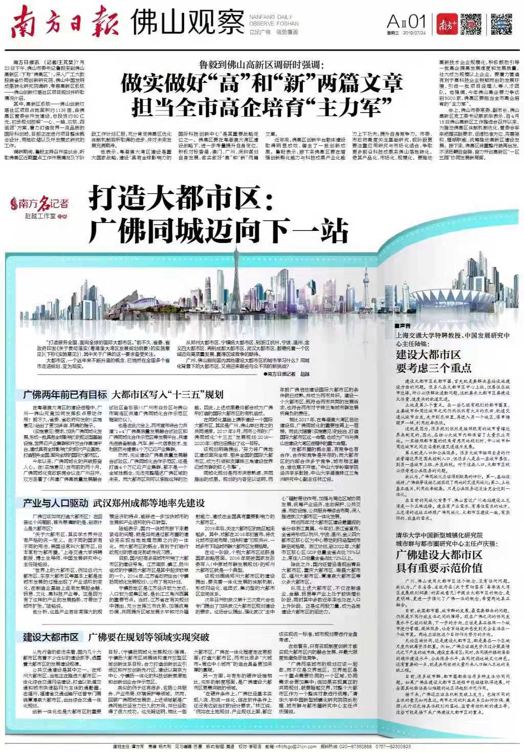 广州、佛山使用大都市区这个概念,没有任何问题。我认为,广东省委、省政府在《关于贯彻落实〈粤港澳大湾区发展规划纲要〉的实施意见》中提出大都市区的概念,是更明确、更进一步强化了广佛一体的概念,希望两地真正融合。