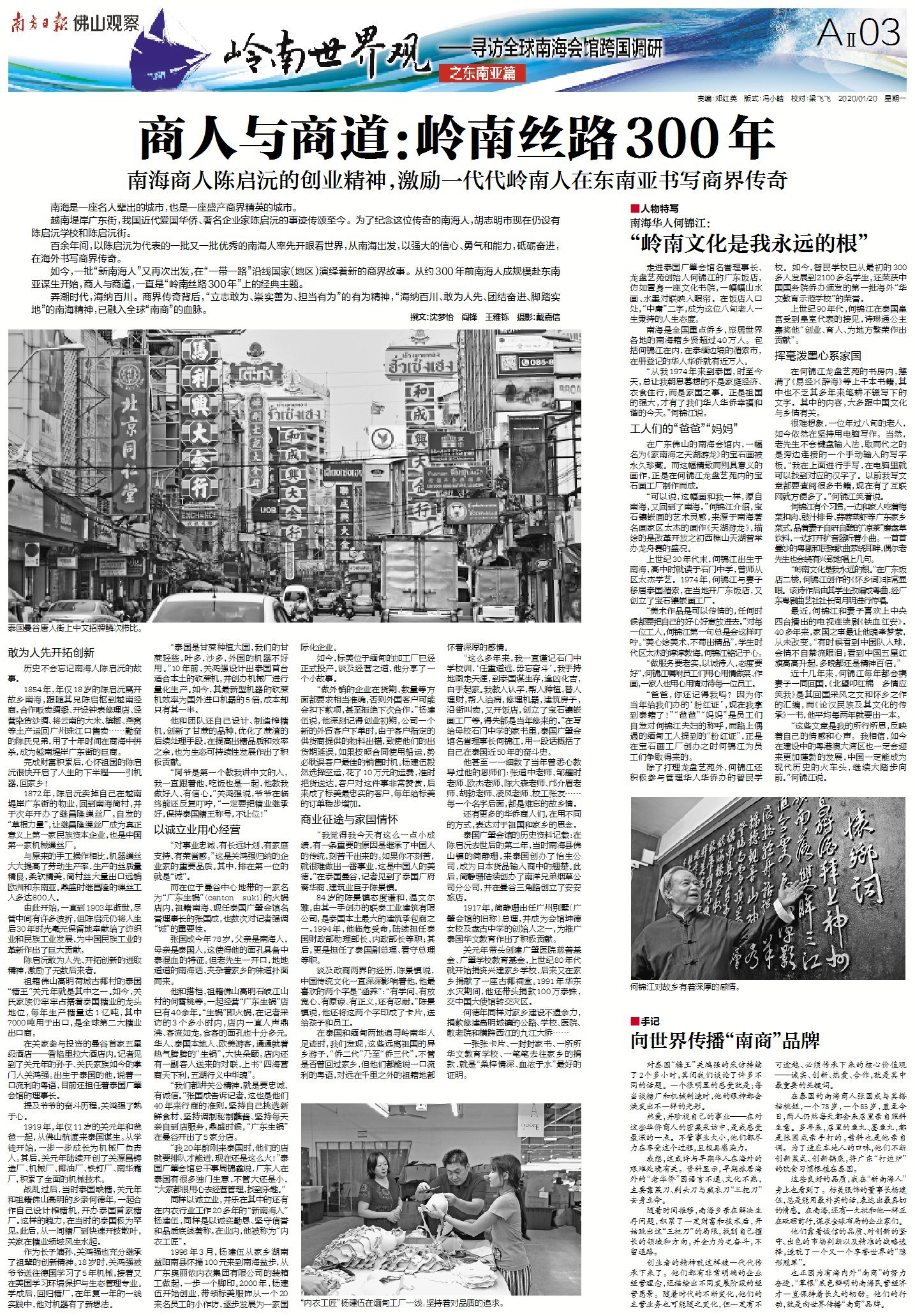 如今,一批“新南海人”又再次出发,在“一带一路”沿线国家(地区)演绎着新的商界故事。从约300年前南海人成规模赴东南亚谋生开始,商人与商道,一直是“岭南丝路300年”上的经典主题。