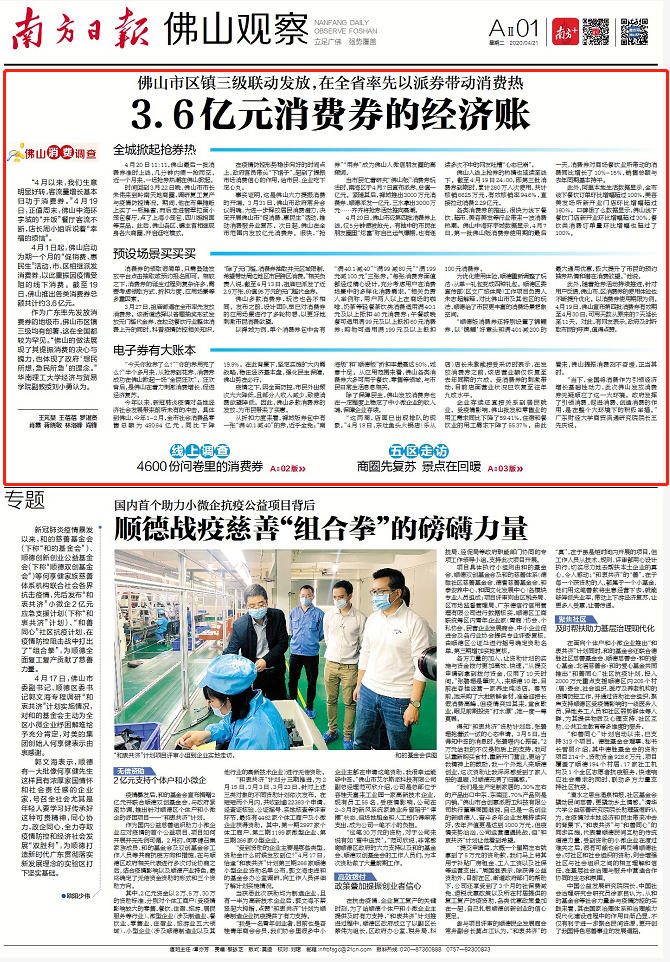 4月1日起,佛山启动为期一个月的“促销费、惠民生”活动,市、区相继派发消费券,以此重振因疫情受阻的线下消费。截至19日,佛山推出各类消费券总额共计约3.6亿元。