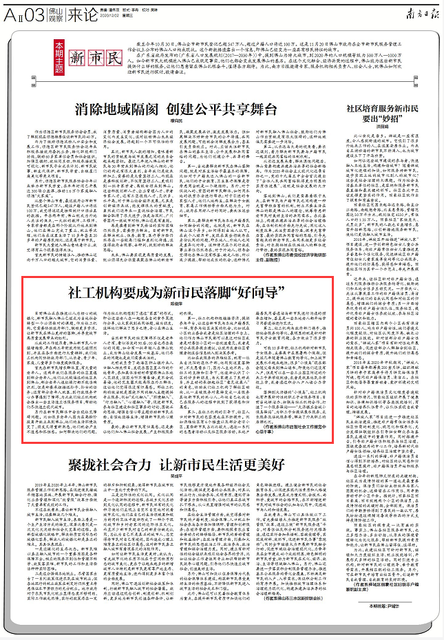 最终,要让新市民有归属感,还是要让他们加入佛山社会发展,产生积极服务的热情。
