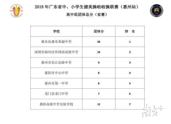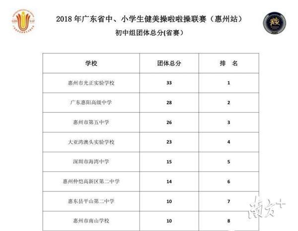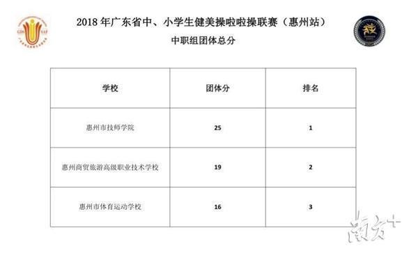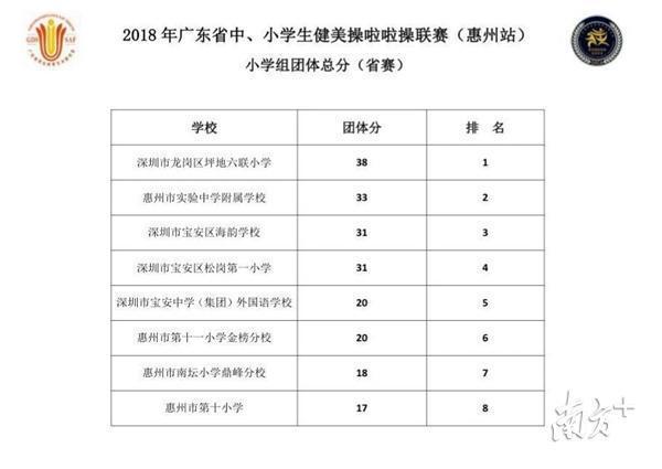 附:2018年广东省中、小学生健美操啦啦操联赛(惠州站)各组别团体总分及特别奖名单