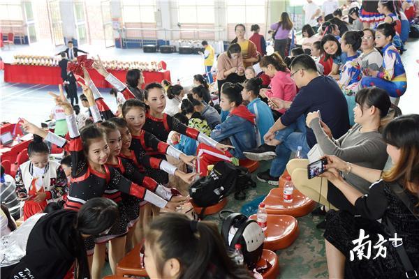 台上一分钟,台下十年功,鲜花和荣耀的背后是长年累月的默默地付出。据了解,各个参赛队的队员们都是抽时间训练,尤其是周末、节假日很难休息。惠州市第十一小学金榜分校运动员罗楚莹的妈妈,专门到现场为孩子拍照,她介绍:“我家的孩子从二年级开始跳健美操,如今已跳了4年多,非常上进和勤奋,未来会把这个特长坚持下去。”