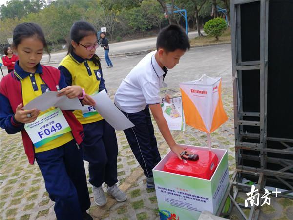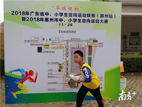 昨天上午11时许,惠州下起了蒙蒙小雨,但并未影响参赛运动员们的热情。在惠州一中高中部,参赛的中小学生分成一个一个小组,有的拿着“寻宝图”找点,有的观察四周环境,在确认目标后,马上跑向下一个地点……