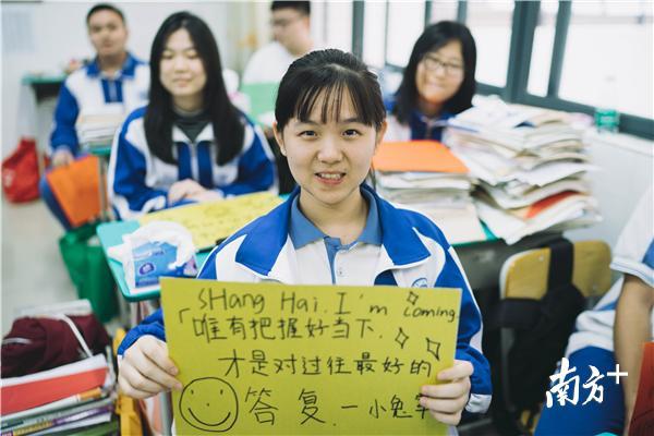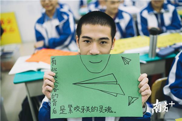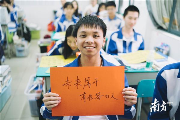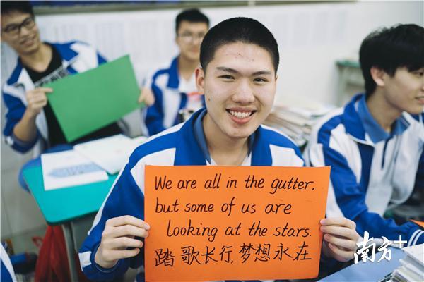 走进该校高三(3)班,去捕捉这群孩子们的笑脸,看着他们精心准备的口号,有些还专门在卡纸上进行一番装饰,从一个一个细节透露他们笑对高考的心理。