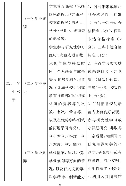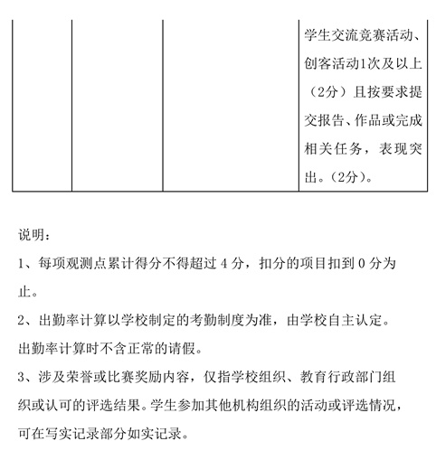 (三)坚持真实客观和公正有效。如实记录学生成长过程中的突出表现,真实反映学生的发展状况,以事实为依据进行评价,确保评价内容客观真实。严格规范评价程序,注重师生全员参与,强化有效监督,确保评价过程公开透明,评价结果公平公正。坚持有效性和可操作性,聚焦可观察、可评价的行为和成果,确保综合素质评价结果可信可用。
