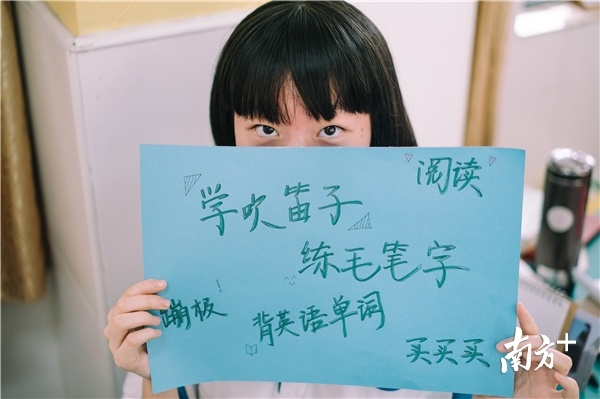 唐晴说:“想要去学配音,成为一个拥有多种声线的女人。”郎子萱说:“想搞定自己的漫画分镜,再多练一下人体,争取成为专业一点的画手。”还有的同学说“想去看一场徐秉龙的演唱会,学会做菜”,有同学列出了看书清单,准备提前学习大学课程。