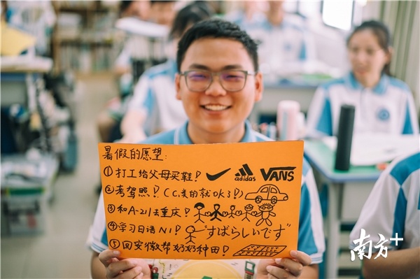 明天(7月7日)惠州34516名考生将踏入高考考场。7月6日,高考前一天,惠州市华罗庚中学高三(4)班的40多名同学一起写下暑假计划和考后心愿。“高考结束了,我要……”怀揣着对未来的期待和向往,同学们纷纷聊起自己心底埋藏已久的“小美好”。