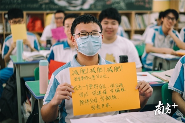 在这个男同学居多的理科班级里,女同学们毫不示弱,她们也列出了自己的运动计划:练马甲线,打排球、登山、学滑板……还有无论是男生还是女生都绕不开的话题:有人要减肥,也有人想增肥。