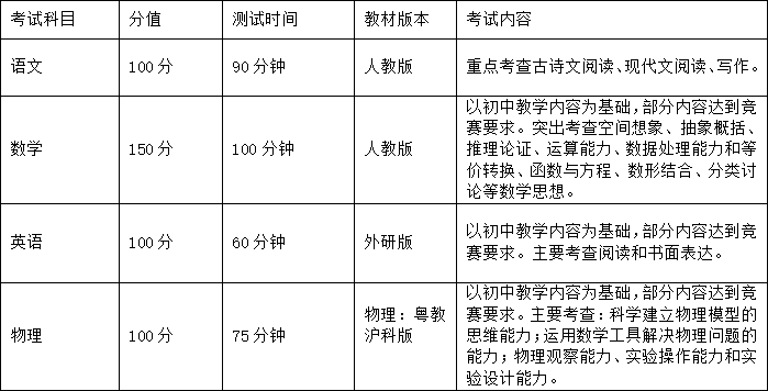 报名创新实验班的考生要具有较强的创新精神和一定的学科特长,成绩优秀,在初三的大型考试中至少一次排名年级前5%。届时,惠州市第一中学将自主命题和组织考试,结合中考成绩择优录取。
