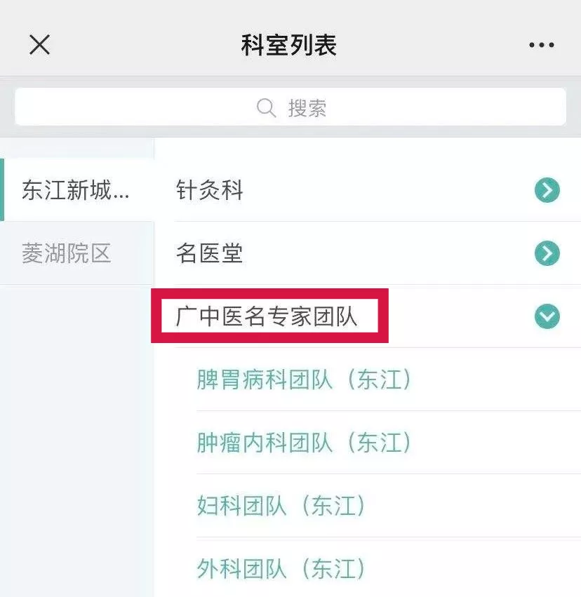 第三步:选择“广中医名家团队”;