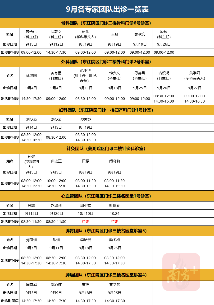 出诊时间:9月4日 9:00-12:00
