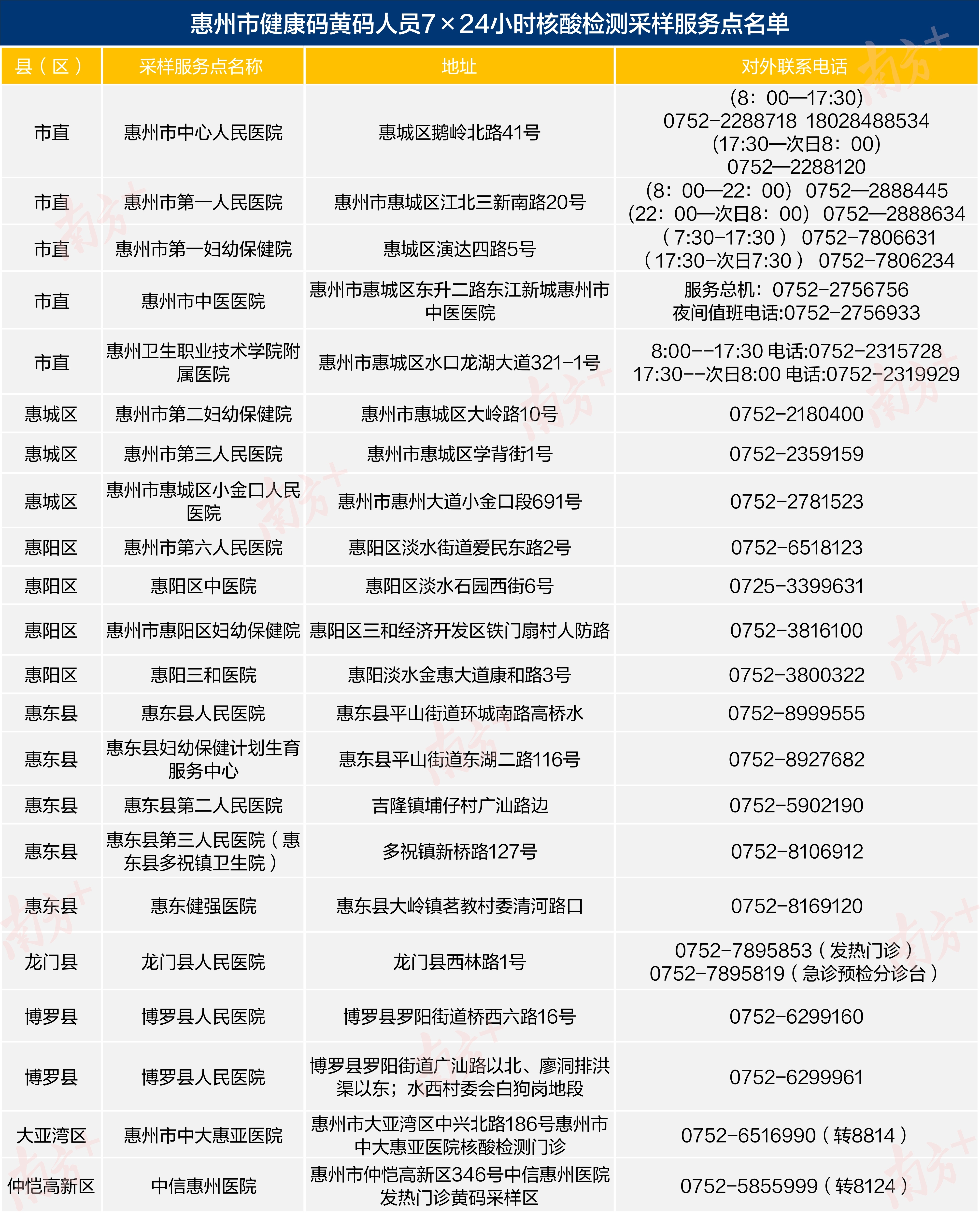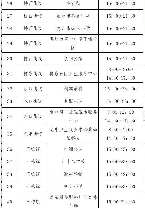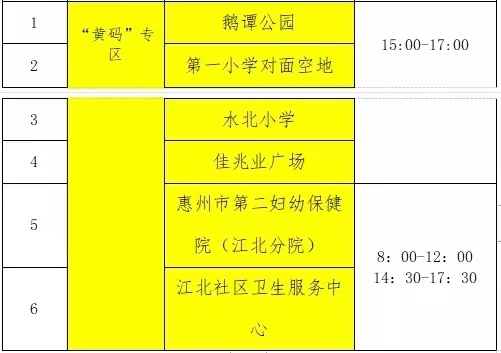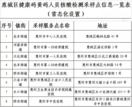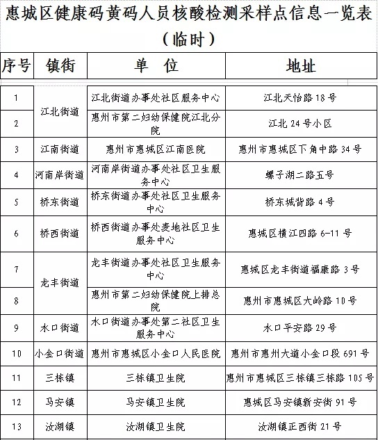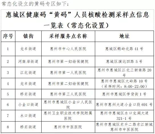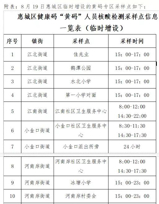 【8月19日惠城区再临时增设“黄码”专区采样点】