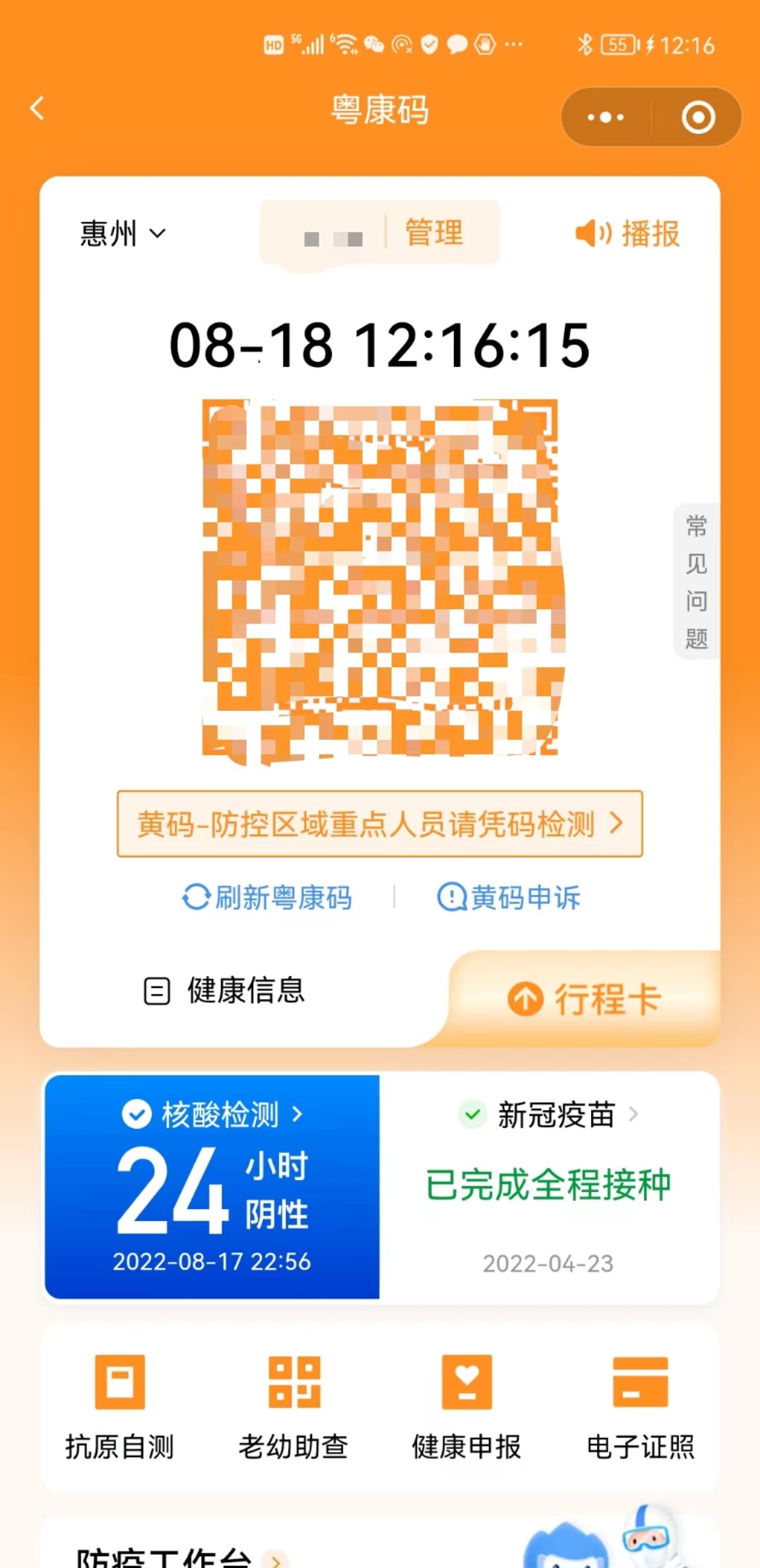 【行程涉及惠州防疫重点区域,健康码将变“黄”】