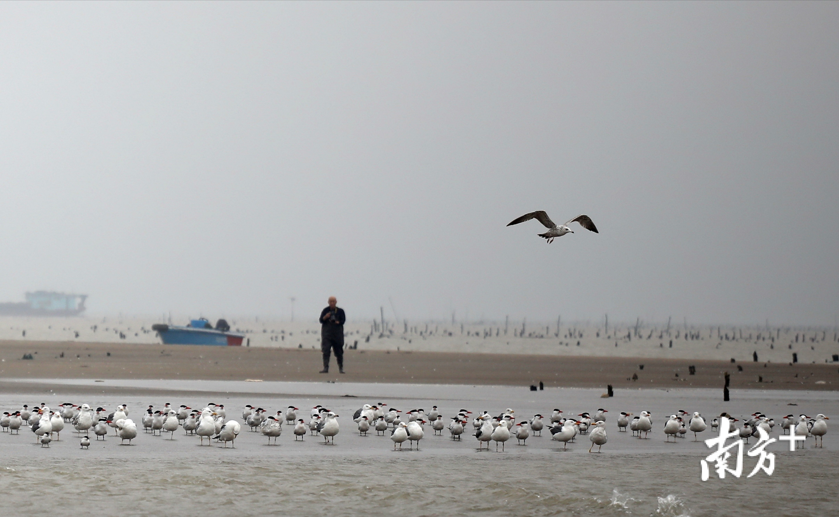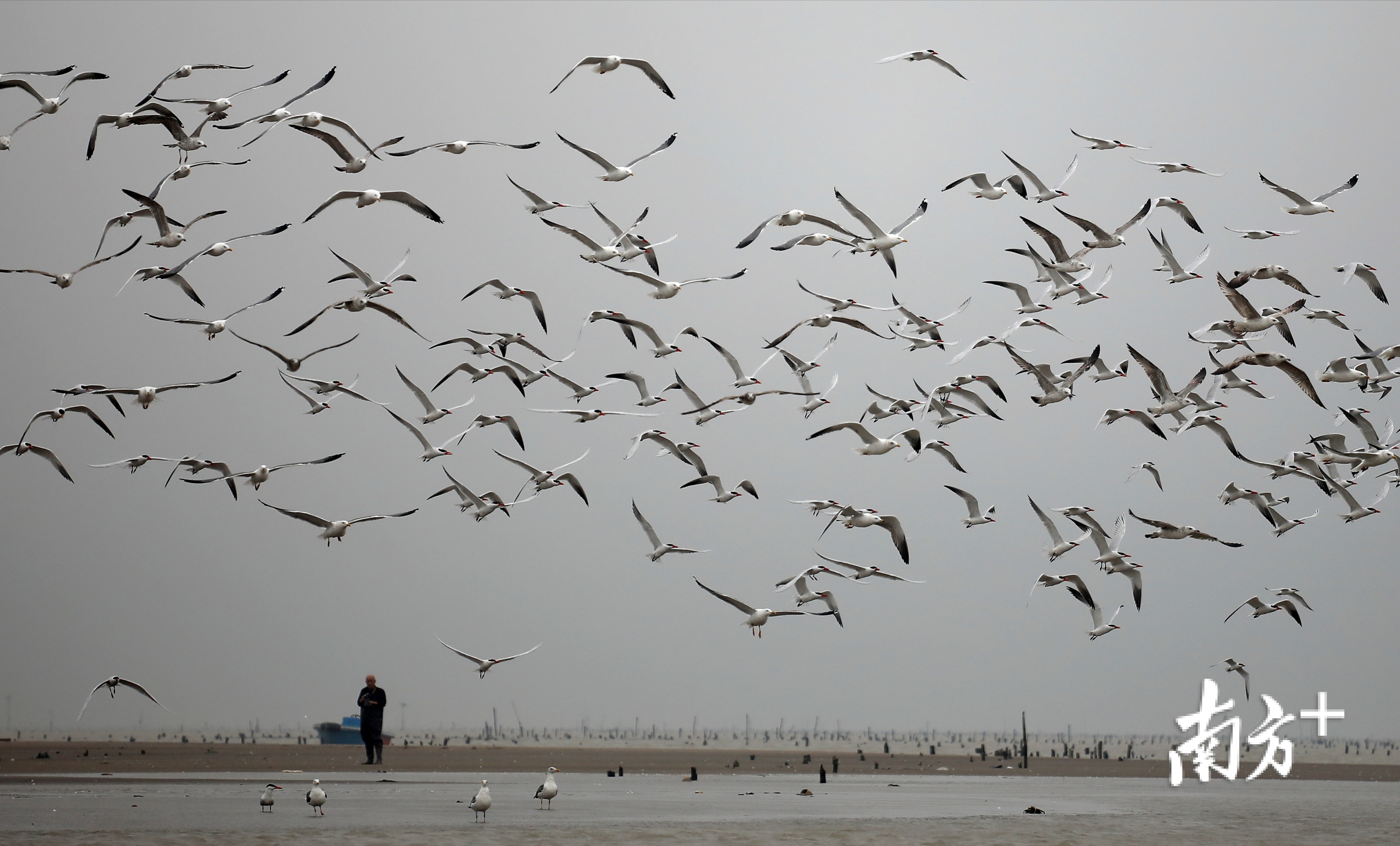 据悉,该片海域有大片蚝排,海产丰富,又有退潮后露出海面的浅滩,成了海鸥的绝佳栖息地。“大约清明节过后,随着天气慢慢变热,海鸥便会逐渐离开这里。”苏先生说。