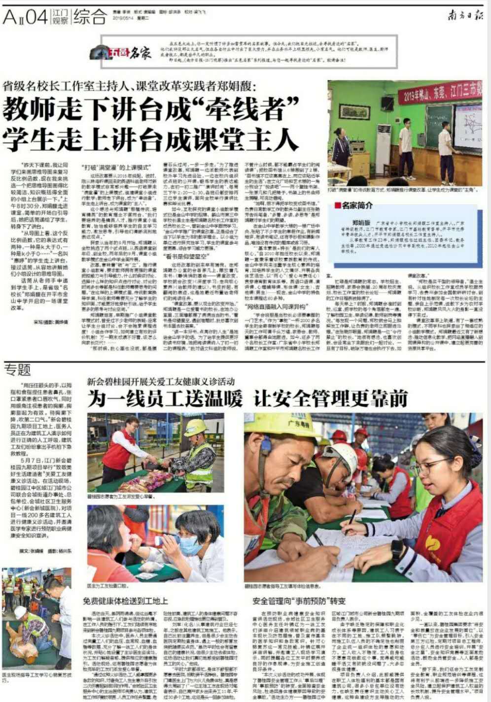 如今,互助探究的课堂小组教学模式已是金山中学的招牌。鹤山市第三中学校长温士生是郑娟馥名校长工作室的成员校长之一,曾到金山中学跟岗学习,“金山中学推广的课堂改革,正是迎合了当下以学生为本的教学理念。以小组为单位进行探究性学习,学生的课堂参与度更高,综合学习能力更强。”