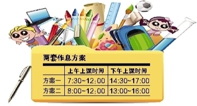 据悉,相比方案一,方案二的区别在于,早上上学时间晚半小时,午休时间减少1.5小时,下午放学时间提早一小时。