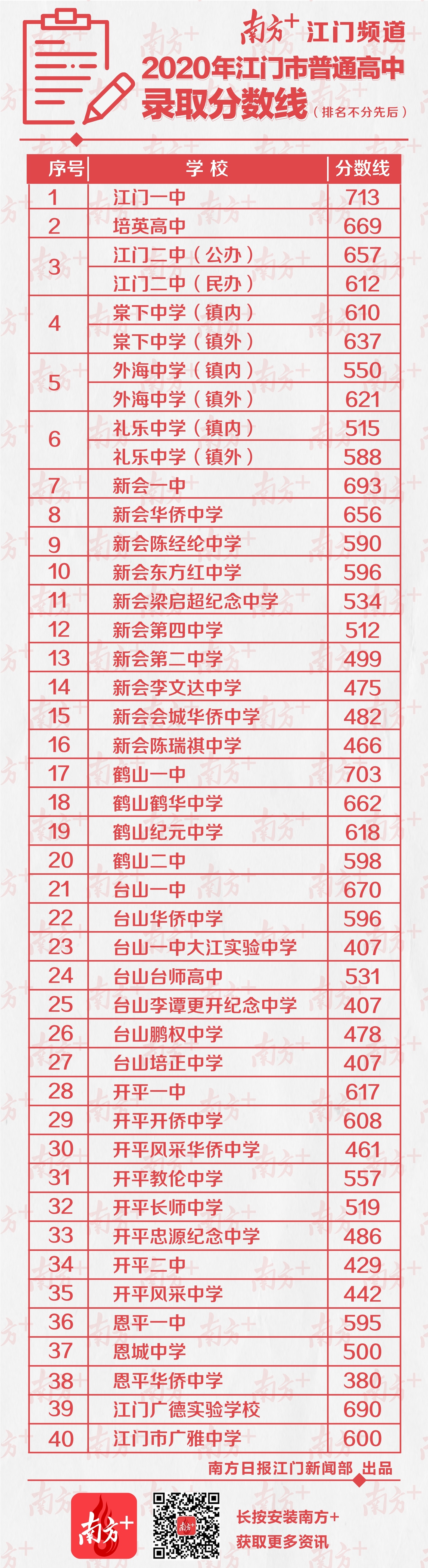 记者从江门市教育局了解到,江门一中录取分数线为713分。