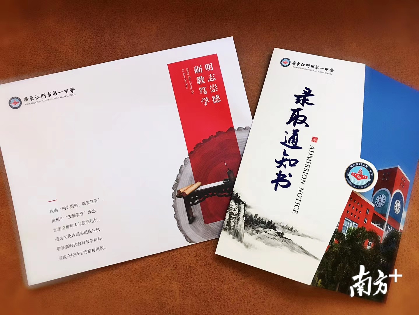 江门一中特制纪念版录取通知书来啦,请考生查收!(注意:正式录取通知书将由江门市招办统一打印发出。)(图/蓝斌)