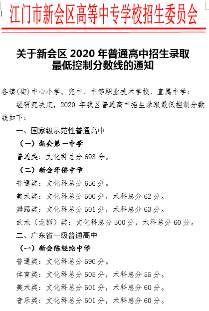 江门市教育局透露,江门二中(公办)的录取分数线为657分。