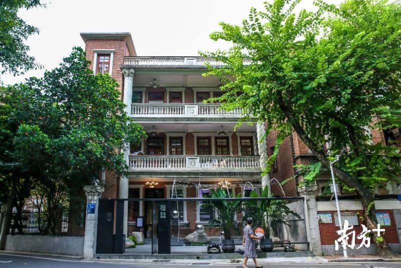 静山内的花街砖、水泥墙、小楼梯保留着原有格局,正是东山口人家的特征。上世纪二三十年代,新河浦吸引军政要员、华侨显贵、商贾名士在此结庐营宅,构成了有别于西关大屋,融汇中西的“贵东山”气场。连绵的树影下,独栋小院、清水红砖、三角山墙的小洋楼静立在秋光里,仿似走进民国建筑速写本。