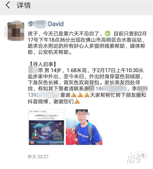 佛山南海14岁男孩小昂的失联牵动社会各界的心。