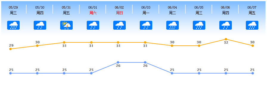据佛山气象台消息,预计未来几日降雨频繁,5月28日到29日佛山市有暴雨,并伴有雷暴和短时强降水等强对流天气,需注意防范城市积涝、山体滑坡等地质灾害,以及强对流天气对龙舟竞渡、水上交通等造成的影响,做好安全措施。