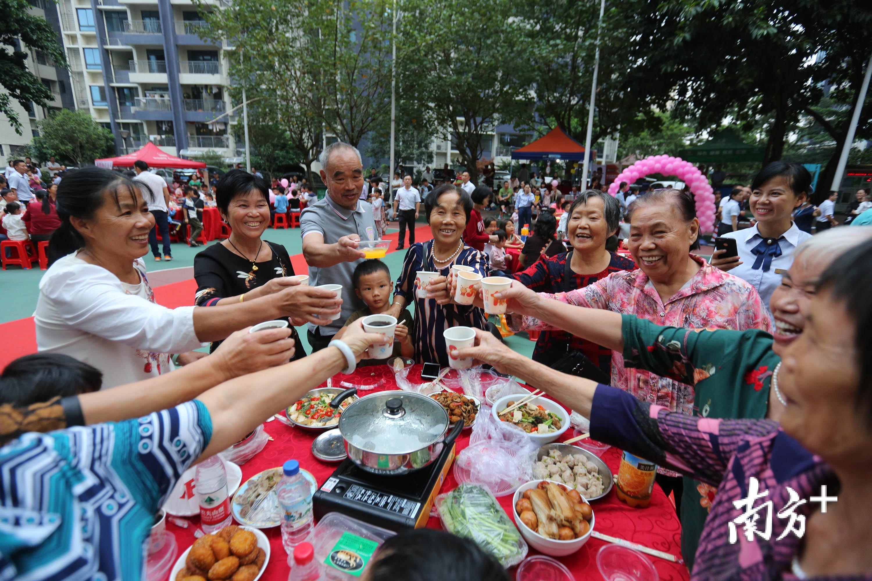 10月14日傍晚,来自东莞大朗碧桂园小区的近200位老人欢聚一堂,大家带着精心准备的一道道拿手菜,共同参与这场满汉全席式百家宴,拉开2018碧桂园敬老月系列活动的序幕。