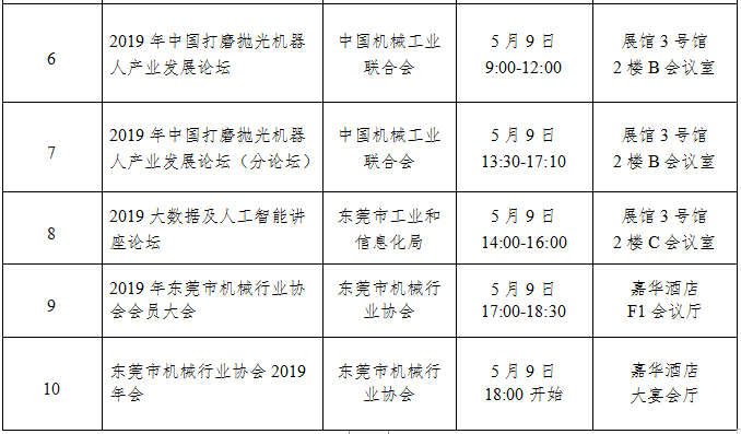 本届智博会将同期同地举办2019机械工业两化融合推进大会、第五届中韩机器人论坛、2019年中国打磨抛光机器人产业发展论坛、工业设计产业融合高峰论坛暨2019 DiD Award(东莞杯)国际工业设计大赛启动仪式、2019大数据及人工智能讲座论坛活动、工业4.0—核技术应用大会等6项高层次主题活动,预计参与人数将达2000多人。同时将举办10多场高峰会、工业论坛和研讨会等活动。