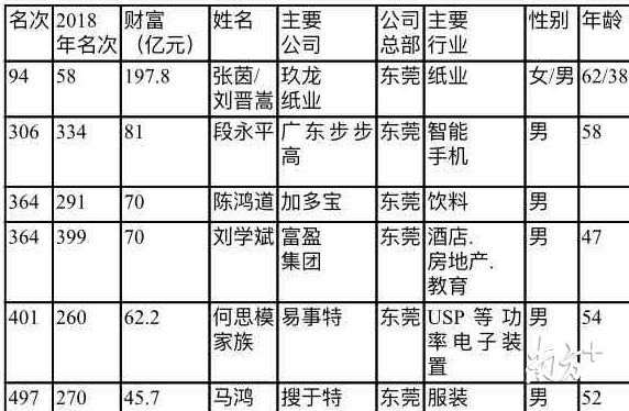 东莞有6名富豪上榜