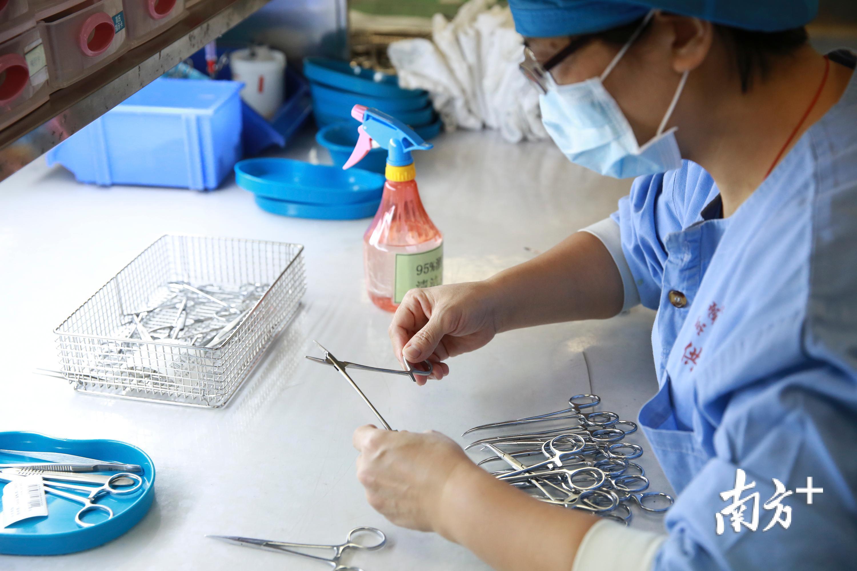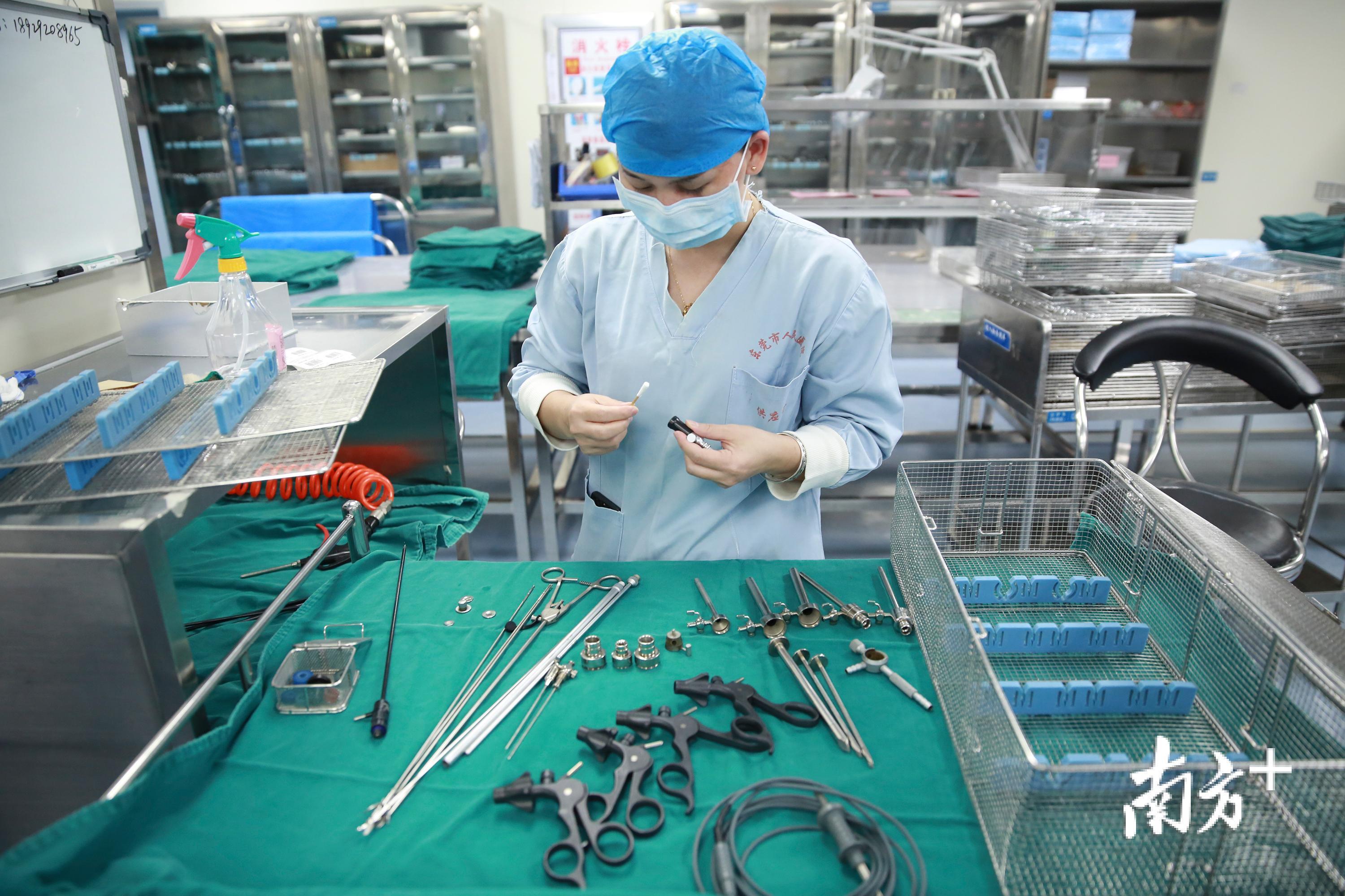 护理部副主任蔡伟英在消毒供应中心工作多年,消毒供应中心的建筑布局设计、设备配置都是她全程参与计划和设计。她告诉记者,消毒供应中心可以说是医院的“脏”,每天,从全院手术室、住院部、门诊使用的所有医疗器械都从这里发出和回收,保障全院医疗安全。